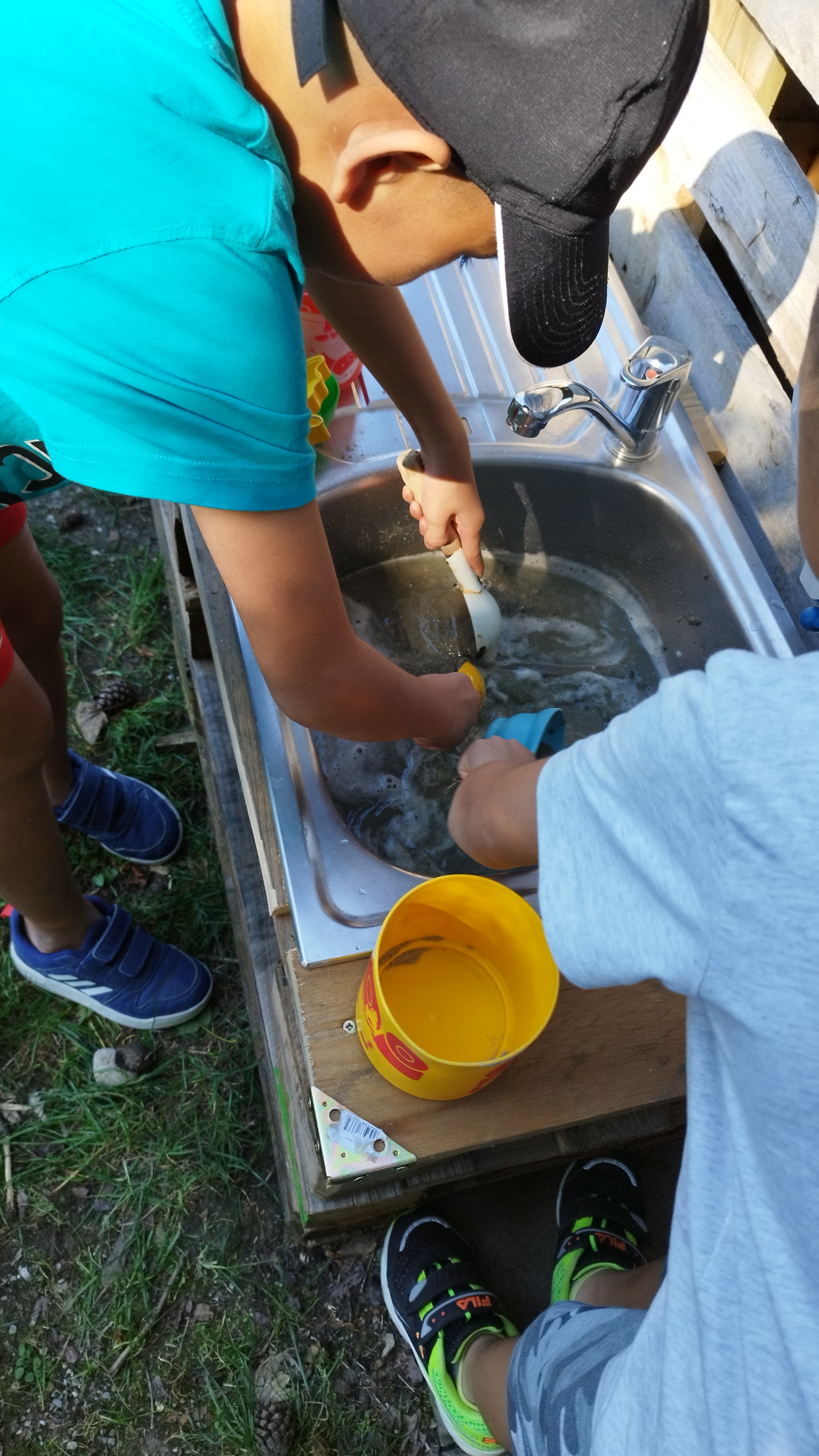 Ab und zu machen wir Lagerfeuer mit Stockbrot und im Sommer Wasserspielchen.